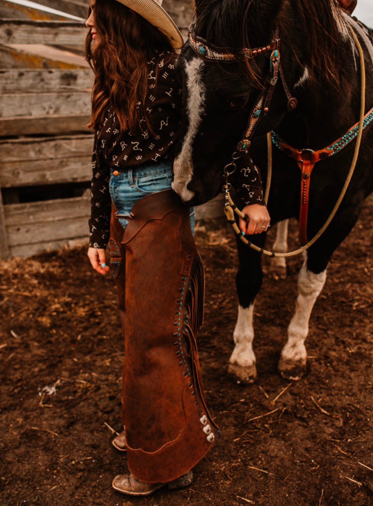 Handmade in Davenport, WA, these oil tan bell-style youth chaps are crafted for young cowboys and cowgirls ready to step out in style. Please note: this leather is naturally oily and may bleed or rub off, so take this into consideration before your purchase. The soft leather will also need time to break in, adding character to each pair.