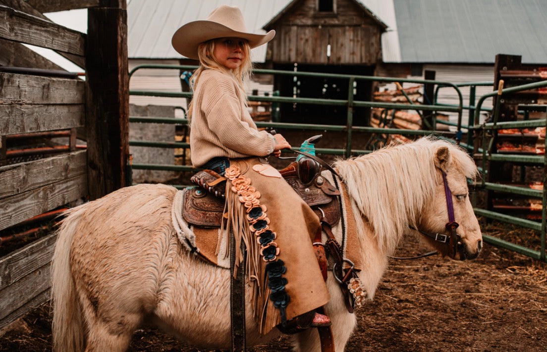 This stunning rugged oak base paired with a peach-to-navy ombré captures the essence of moody fall skies — making it one of our absolute favorites from this collection. Finished with our signature heart pocket, these chaps are truly made with love and western charm.